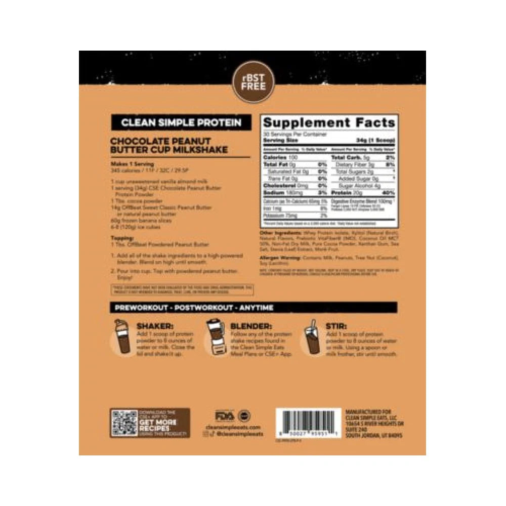 Clean Simple Eats Protein, Chocolate Peanut Butter 36 oz