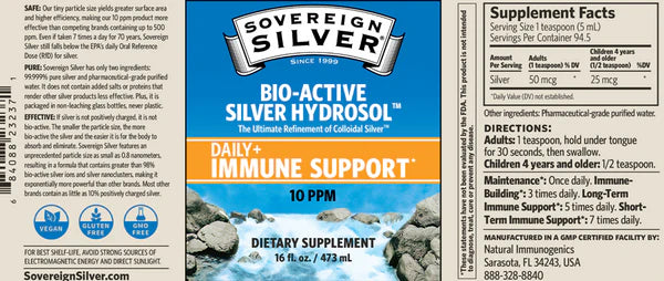 Sovereign Silver Bio-Active Hydrosol 10 PPM 16 fluid oz 473 ml Daily+ Immune Support
