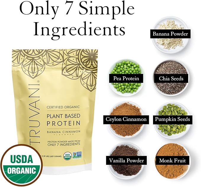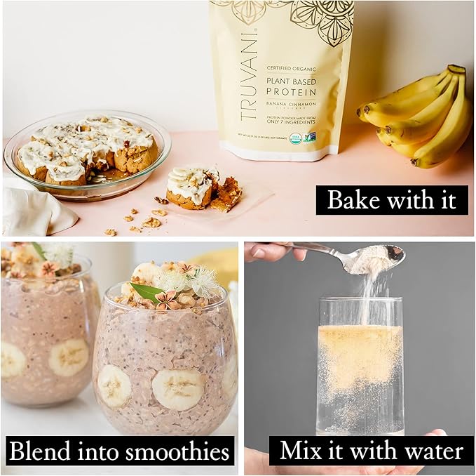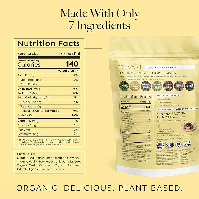 Truvani Vegan Pea Protein Powder | Banana Cinnamon | 20g Organic Plant Based Protein | 20 Servings 22.19 Oz 1.39 lbs